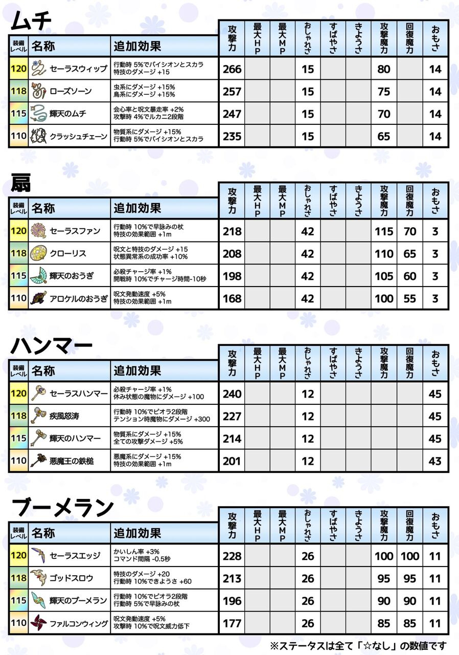 過去の鎌に比べると、攻撃力や攻撃魔力などで優れるので買い替えで良いですね。