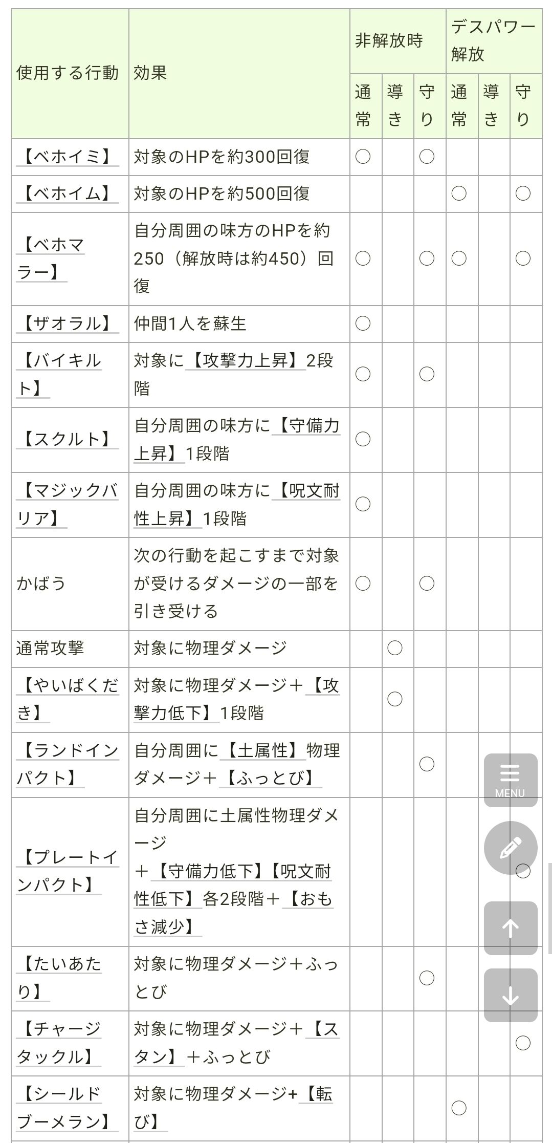 | 蘇生時バイキルト(専) | 50% | 65% | 75% | 〃 | 〃 |