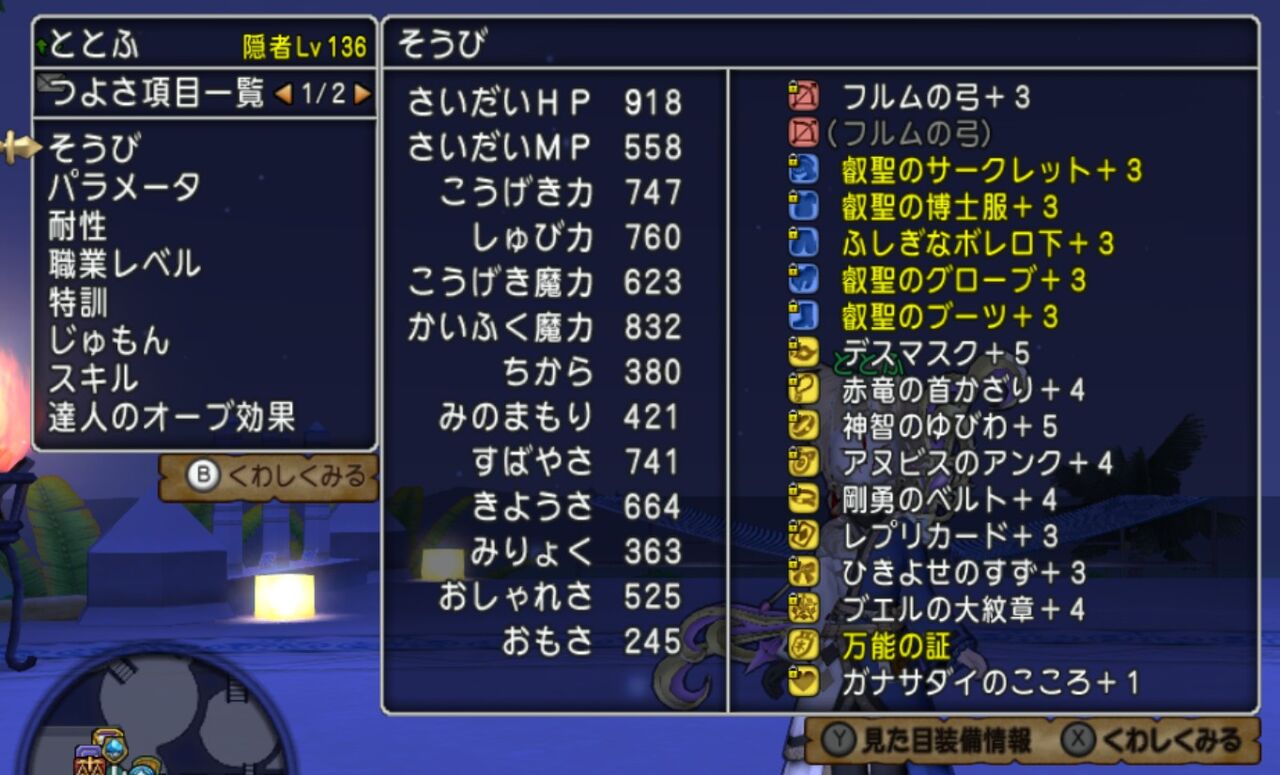 隠者のステータスや装備