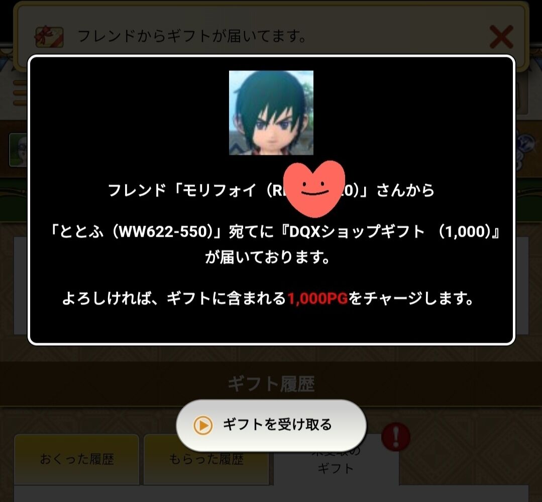 ギフトを受け取る画面が出てきて、受け取ることができます!