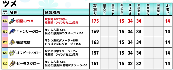 現状、ツメと言えば、メゼⅣ武闘家のツメというのが一丁目一番地になっているので、その観点でみると前作の方が強そうです。 -