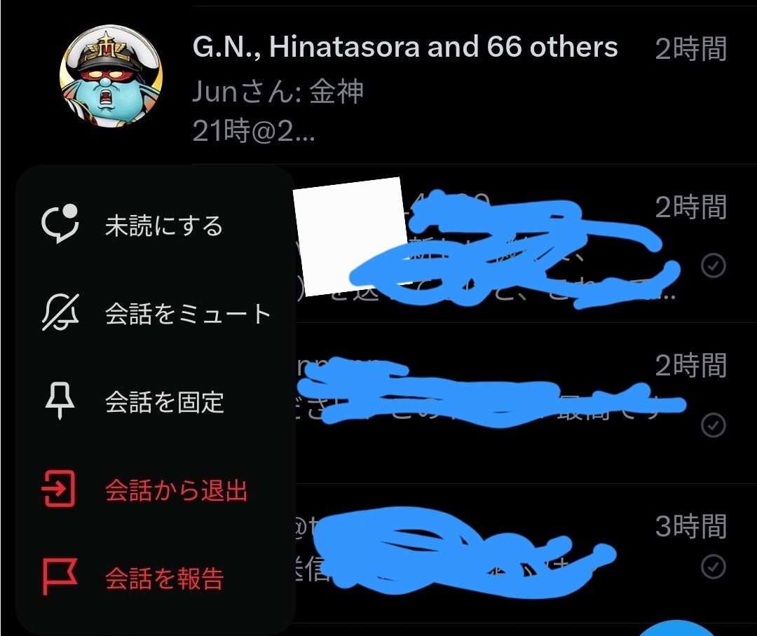 DMを長押しして・・・会話を固定とすると、一番上に固定されて見失わなくなります!