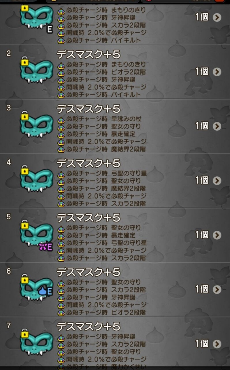 魔犬の仮面に比べて、牙神昇誕、暴走確定、まもりのきり、聖女の守り、会心ガードの5種類が増えている。(太字は強いですね)