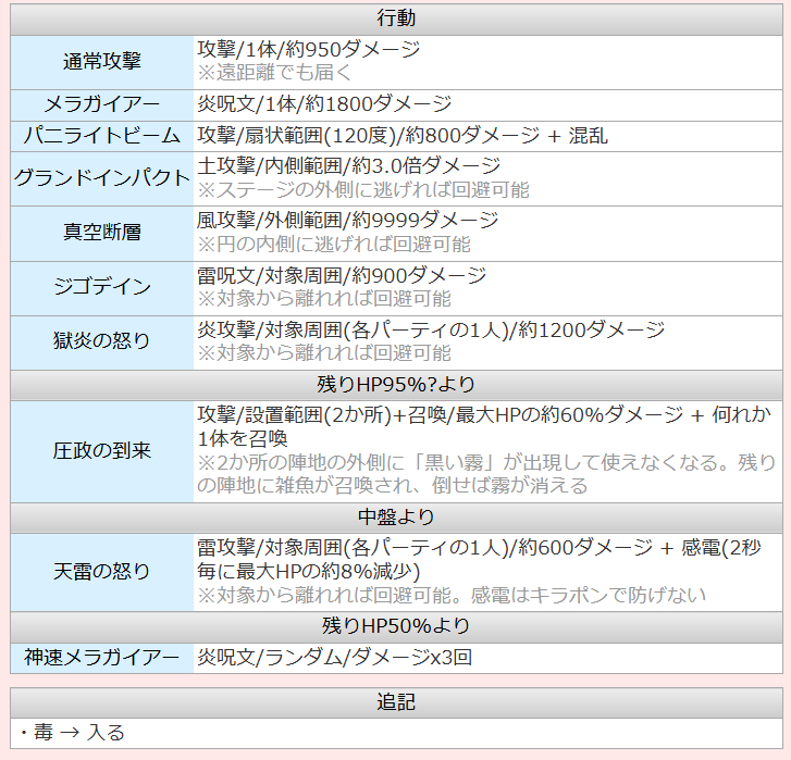 IKEさん 多様なボスの攻撃属性やダメージを掲載