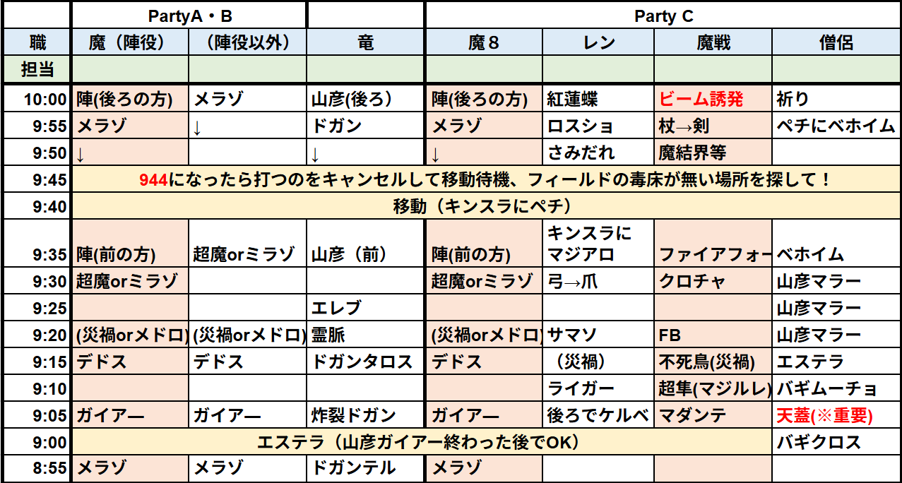 9:15FBデドス、レボル災禍9:05、9:00エステラ召喚、メラガイアー