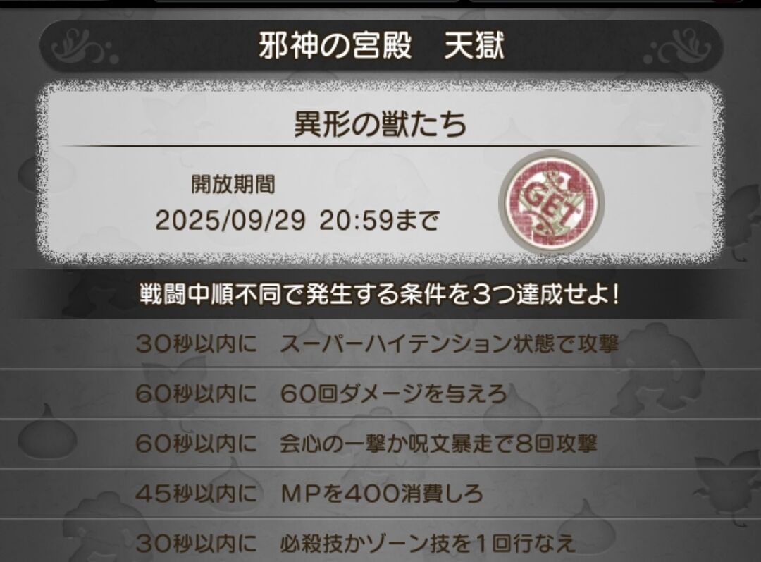 天獄 異形の獣たち(隠者+魔法・竜術士が楽) ドラゴンクエスト10 ver7.5 天獄 X Facebook はてブ LINE Pinterest コピー 2025.09.27 隠者登場で、かなり倒しやすくなってますね。 今回のボスは物質系で、光フォースに弱いです。耐性はマヒ怯え。 そしてお題も緩めなので、意外と周回チャンスかもしれません。 結局魔法が強いですね。◎隠者、竜術・魔法〇魔法戦士 隠者がトライアミュレット、ヒーリングドリーム、キラポンをまくのが強く、 昔は、スタン職がいる場合は、不死 > 獣 > 増殖 の順番で倒すのが良いとなっていましたがいまは、もう暴走マヒャドで倒せばいいのでらくちんです。
