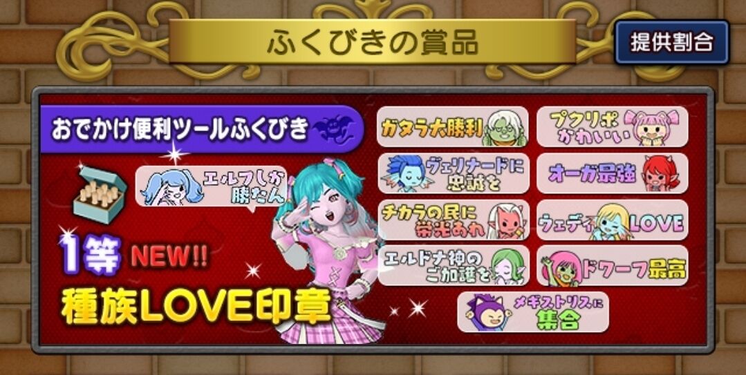 ふくびきの賞品に種族Love印章が追加されましたね!