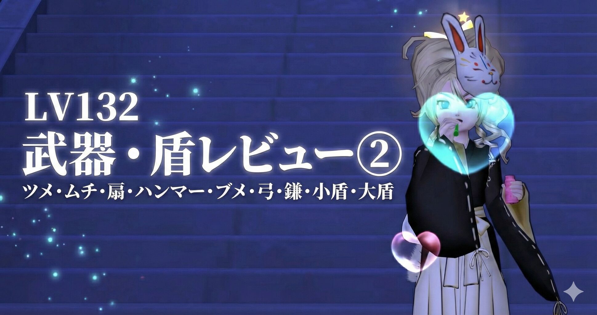 しかし、往年の名作の上位互換、鎧職でも使いたくなる小盾等、随所に光る部分が見えてきました。この後のコンテンツや評価次第で、更に買いたくなる武器・盾が出てくるかもしれませんが、現段階での評価を纏めましたので、ご参考までに読んで頂けましたら嬉しいです。